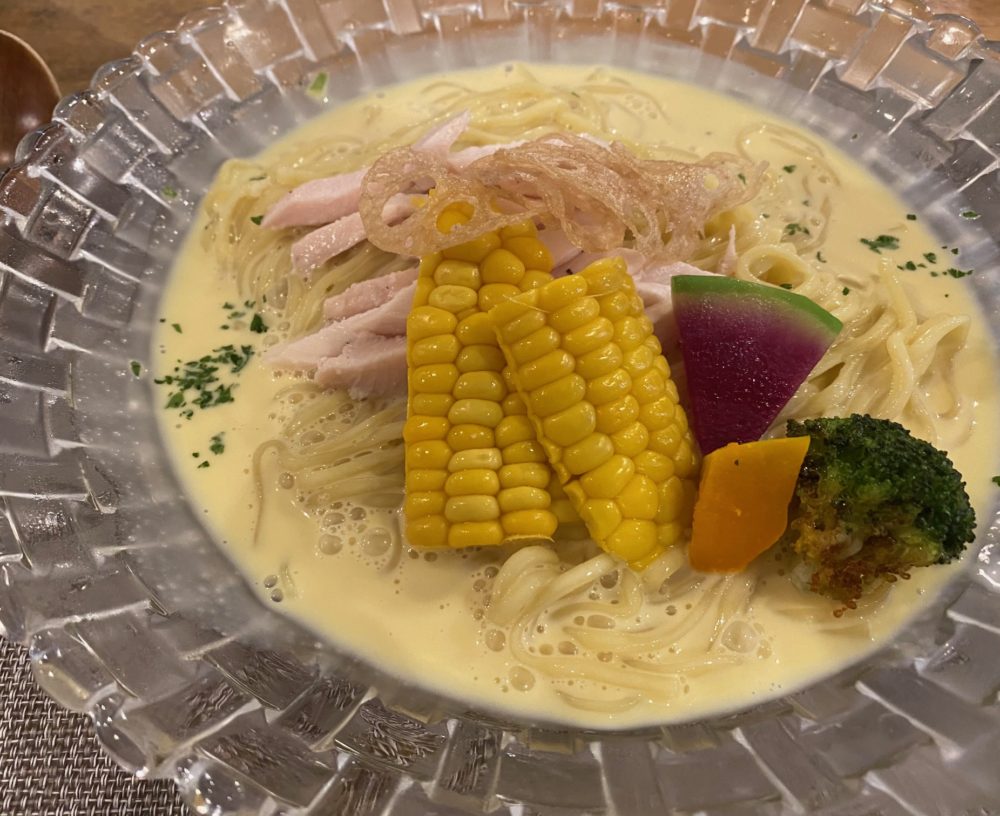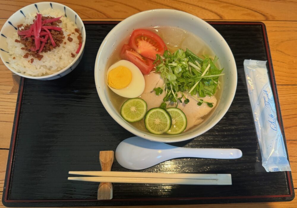 そこで一日5食限定の冷やしラーメンがあり、珍しさに選んでみると非常に美味しく、ダメだと思いながらも完飲してしまいました。(笑)