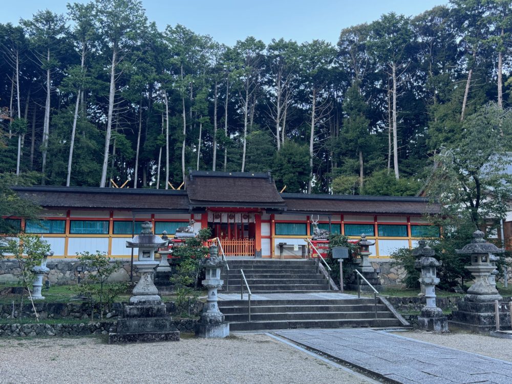 池が見えてから、50mほど進むと本殿が見えてきますが、通常の神社よりも少し平坦に作られているのが特徴的で、境内が広く見えるため不思議な感覚になりました。