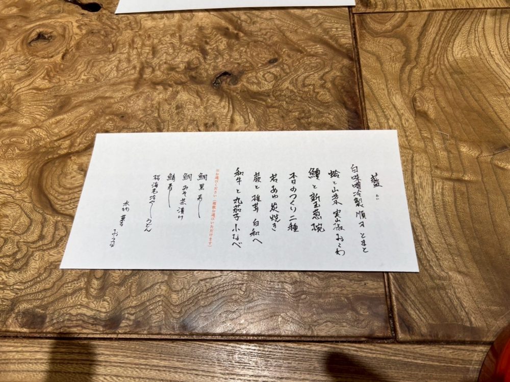 まずコースのお品書きですが、見ただけで美味しそうです。
