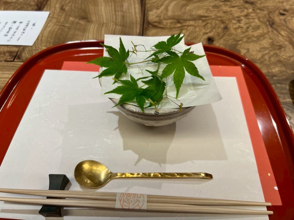 一番最後には、茶菓子と抹茶が出てきたのですが、抹茶は最高に美味しいですし、茶菓子は実山椒が入った最中テイストの菓子で締めにふさわしい茶請けでした。