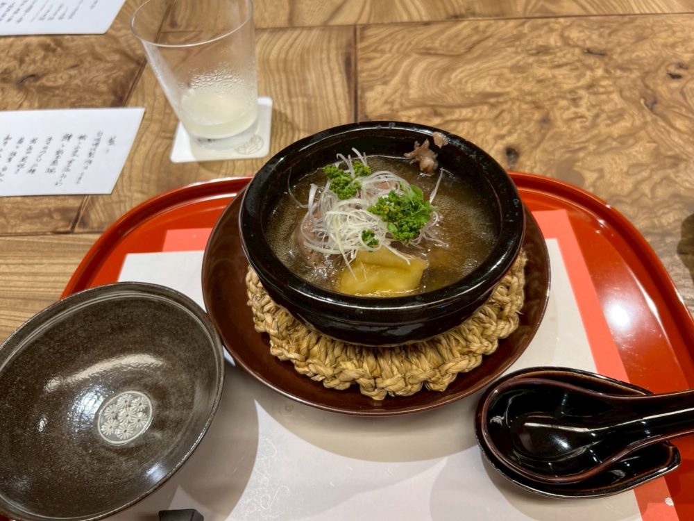 水ナスと牛肉の小鍋として最後に出てきた料理ですが、あんかけ仕立てのスープが非常に美味しく、ナスとの相性抜群でした!
