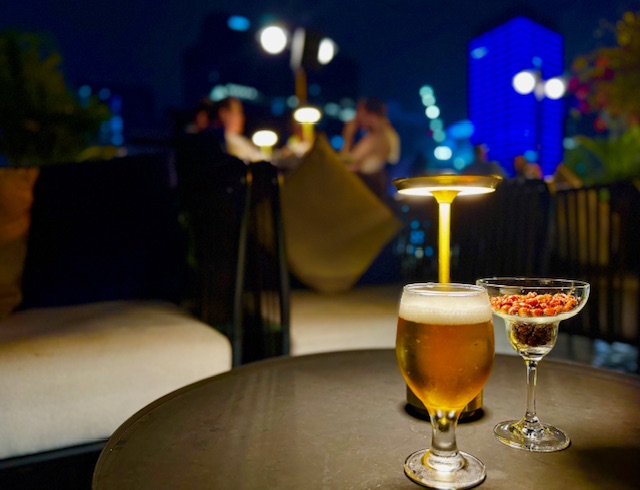 ビルの屋上に上がれば、そこは都会のオアシス。ビール一杯の値段は上がりましたが、